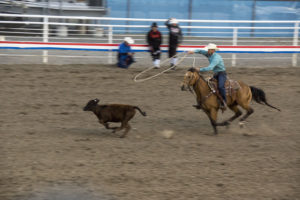 So saßen wir dann abends um 19:00 Uhr so dick eingepackt wie uns möglich im Cody Stampede Rodeo Park. Leider hatte sich der starke Wind auch auf diesen Teil Codys ausgeweitet – und deshalb war es in der offenen Tribüne extrem kühl. Gut, dass wir aus dem Flugzeug unsere Decken mitgenommen hatten, die vermochten es zumindest ein wenig, uns zusätzlich zu wärmen.