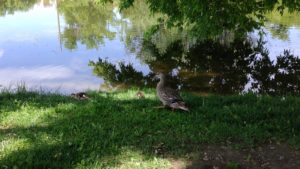 Wir machten es uns also mit unserer Kühlbox gemütlich und während des Frühstücks kletterte plötzlich Mama Ente mit drei kleinen Entlein aus dem Wasser- so gar nicht scheu kamen sie auf etwa anderthalb Meter an uns heran und ließen sich auch überhaupt nicht stören. Bereitwillig ließen sie sich von mir videografieren. Und wieder muss ich sagen: niedliche Tierwelt!