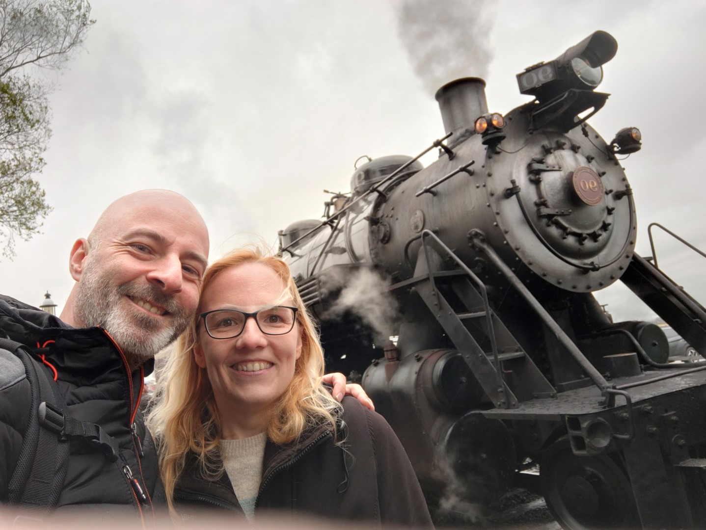 Aber dennoch haben wir es uns nicht nehmen lassen, der Strasburg Rail Road einen Besuch abzustatten. Gebucht hatten wir quasi das volle Programm: zunächst eine Führung durch die Werkstatthalle, in der die alten Loks repariert und restauriert werden, anschließend eine Fahrt im First Class Parlor Car, gezogen von einer 98 Jahre alten Dampflokomotive.