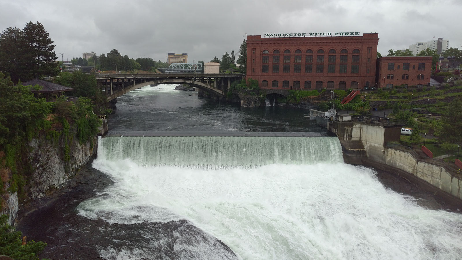 Trotz Regen machten wir einen kleinen Rundgang durch die City, um uns die, mitten in der Stadt liegenden, Spokane Falls Wasserfälle anzusehen. Besonders freuten wir uns auch darauf, mit einer Seilbahn zu fahren, die genau über diese Wasserfälle fährt. Leider war diese nach der Winterpause noch nicht wieder in Betrieb und somit mussten wir auf dieses Vergnügen leider verzichten. Schade!
