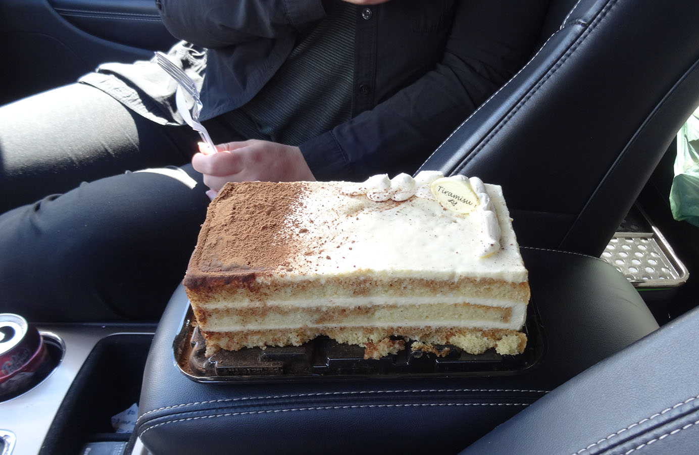 Das Frühstück verlief unkonventionell aber großzügig im Fahrzeug an den Ufern des Stausees. Wir hatten am Vortag ja ordentlich bei Walmart eingekauft und konnten so auf fein belegte Sandwiches zurückgreifen – zum Nachtisch gab es dann noch edelstes Tiramisu!