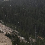 Zunächst führte uns die Straße nämlich wieder steil einen Bergpass hinauf. Links und rechts sahen wir bald wieder schöne weiße Schneeflächen. Aber dann kam etwas Neues: Schnee von oben! Es fing tatsächlich auf eine Höhe von 1.596 Metern an zu schneien! Ich stand im T-Shirt draußen und fotografierte und kurz darauf landeten dicke Flocken auf mir!