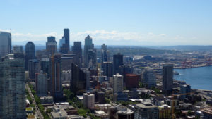 Aber was macht man mit so einem Traumwetter in Seattle? RICHTIG! Man geht auf die Space Needle! Darauf haben Nadine und ich und schon seit Monaten gefreut! Und wie kommt man am Besten da hin? Natürlich mit der Monorail!