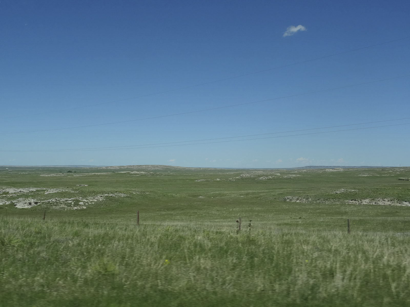 Stellt euch eine absolut gerade Straße vor, die bis zum Horizont auch nichts anderes tut, als weiter geradeaus zu laufen. Und ist man dann am Horizont angekommen, geht es wieder bis zum Horizont….. richtig: geradeaus. Schaut ihr nach links, seht ihr bis zum Horizont Grasland – schaut ihr nach rechts, seht ihr praktisch genau das gleiche, nennen wir es hier aber der Abwechslung halber mal „Prärie“. Es gibt also in einem Umkreis von etwa 100km nichts als Gras, das von EINER Straße durchzogen wird. Ab und zu sieht man mal einen Briefkasten am Straßenrand und eine von diesem Briefkasten wegführenden Weg. Das vermutlich dazugehörige Farmhaus liegt aber meist so weit von der Straße entfernt, dass man es nicht sehen kann.