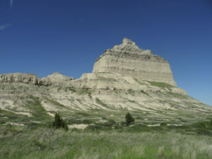 In Scottsbluff angekommen, besuchten wir direkt das Scottbluff Monument – eine malerische Steinformation, die nach Jahrmillionen der Erosion und der Auswaschung der ursprünglich dort befindlichen Hochebene durch Regen stehengeblieben war. Leider machten uns die Parkranger darauf aufmerksam, dass wir nur etwa 45 Minuten Zeit haben, da man gleich schließe. Also nahmen wir mit, was wir kriegen konnten und gingen auf dem Gipfel des Monuments ein wenig spazieren.